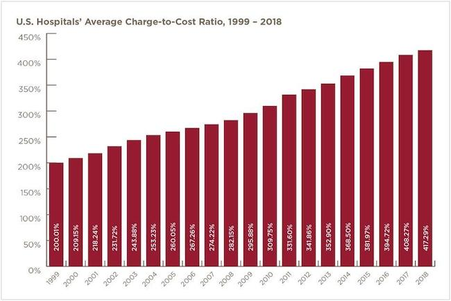 收费上涨的同时,大型的医院兼并和收购也在不断增加,其结果是市场垄断加剧,进一步导致医院利润提高,收费增加。在利润最高的100家医院中,营利性公司拥有或经营着其中的95家医院,其中以美国最大的医院系统“HCA 医疗保健公司(HCA Healthcare)”为首,它自有或经营着前100家医院中的53家。2019年,HCA在财富全球500强企业中排名241位,利润达到37亿美元。