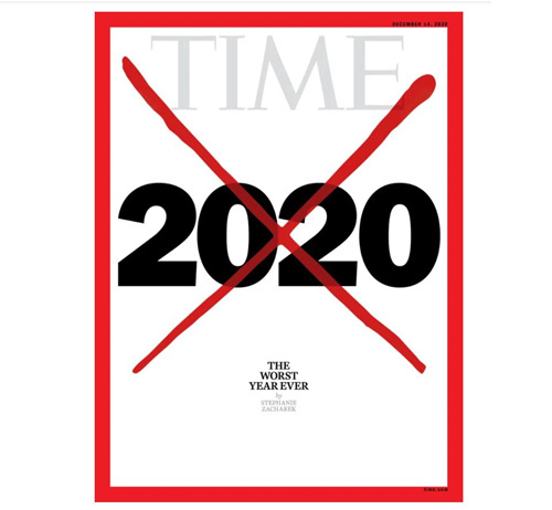 当地时间12月5日,美国《时代周刊》公布最新一期杂志封面。2020字样上被画上的“大红叉”,是对美国过去一年的总结:“最糟糕的一年”。