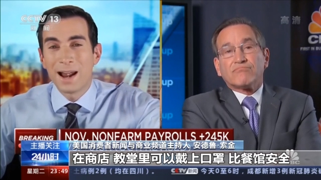 美国消费者新闻与商业频道主持人 安德鲁·索金:在商店,教堂里可以戴上口罩,比餐馆安全 。