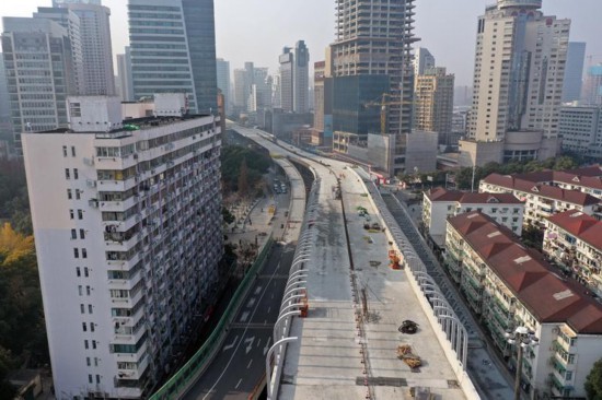 从南北高架上空横穿,最高处30米,上海北横通道西段高架全线结构贯通