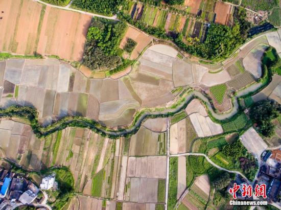 资料图:航拍广西柳州市柳北区沙塘镇耕地,五彩缤纷。 黄威铭 摄