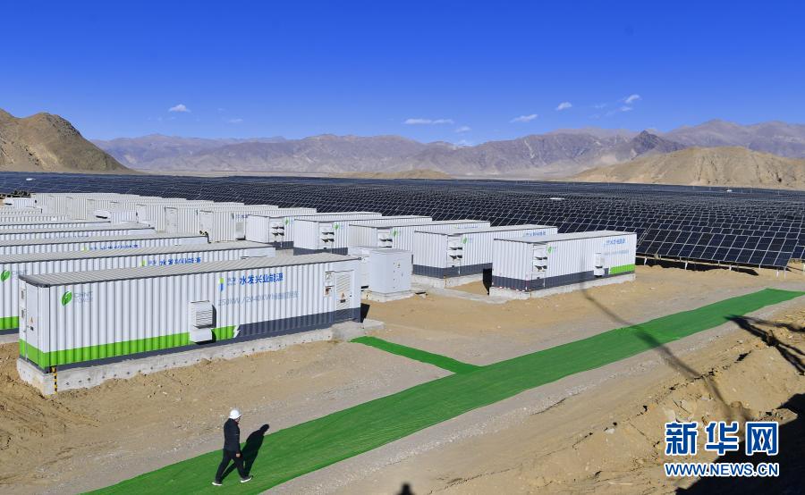 这是日喀则市江当现代生态产业示范园内的50兆瓦光储电站储能系统和太阳能光伏组件(2020年12月24日摄)。新华社记者 张汝锋 摄