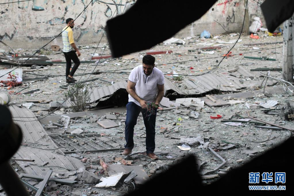 5月12日,人们在加沙城查看空袭过后的废墟。新华社发(里泽克·阿卜杜勒·贾瓦德摄)