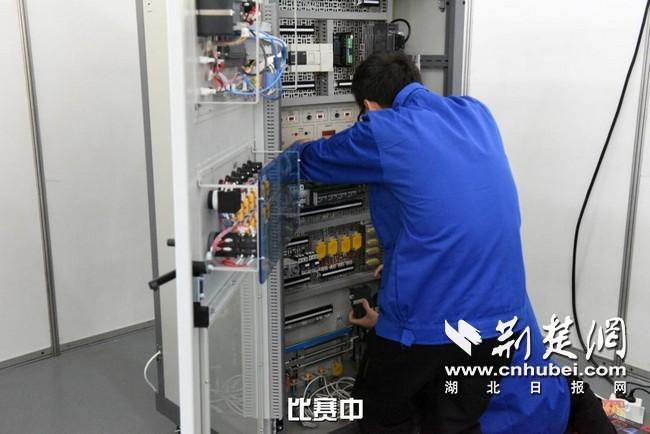 学生参加2017年湖北省职业技能大赛现代电气控制系统安装与调试赛项。学校供图