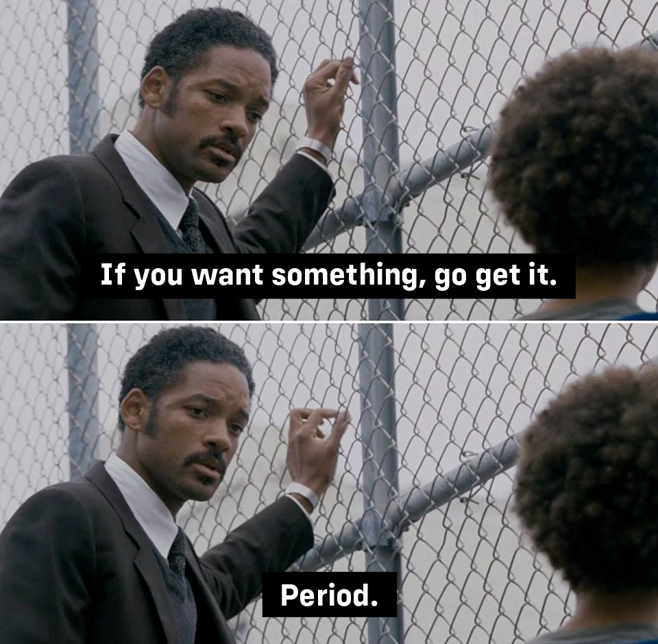 ▲《当幸福来敲门》中,威尔·史密斯扮演的主角对儿子说:“如果你有梦想的话,就要去捍卫它。那些一事无成的人想告诉你你也成不了大器。如果你有理想的话,就要去努力实现。就这样。”