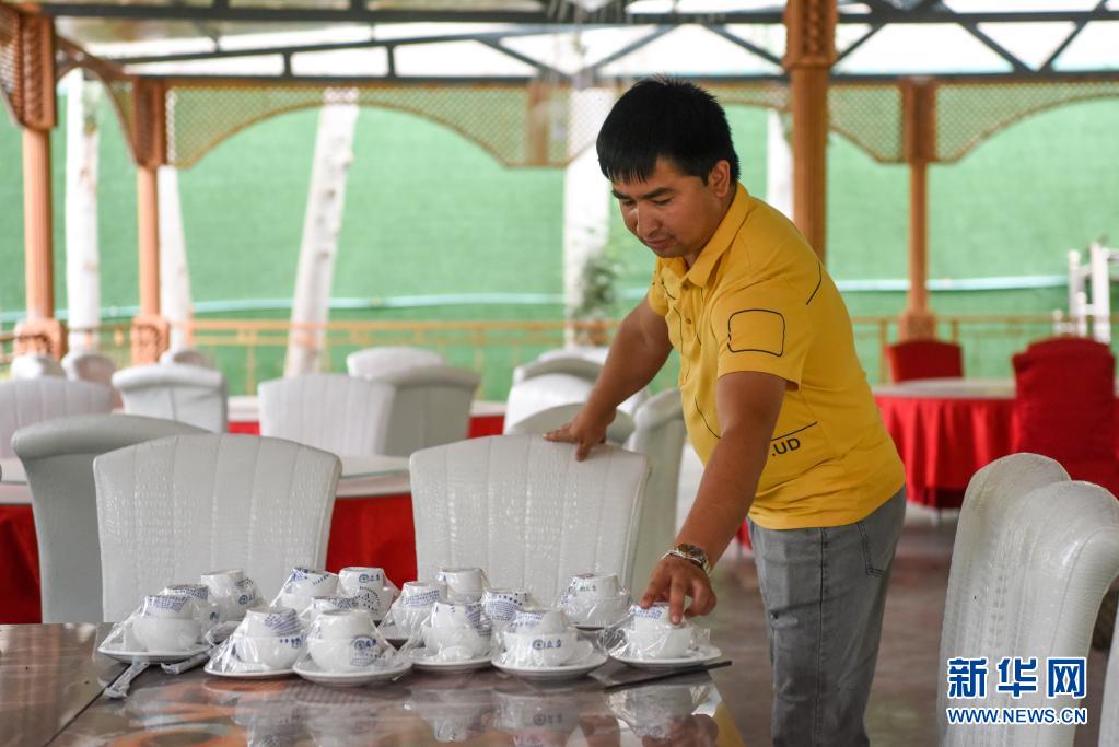 7月5日,在新疆阿克苏市依干其乡巴格其村,村民在自己经营的农家乐里忙碌。新华社记者 丁磊 摄