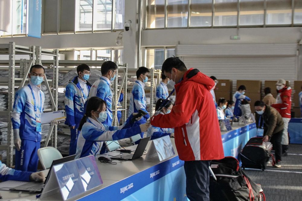 14日上午,国家雪车雪橇中心等场馆运行团队的工作人员抵达延庆制服和注册分中心,经过测温、扫码、安检、身份验证等环节,在志愿者的引导下,有序办理证件注册,现场试穿并领取制服装备。