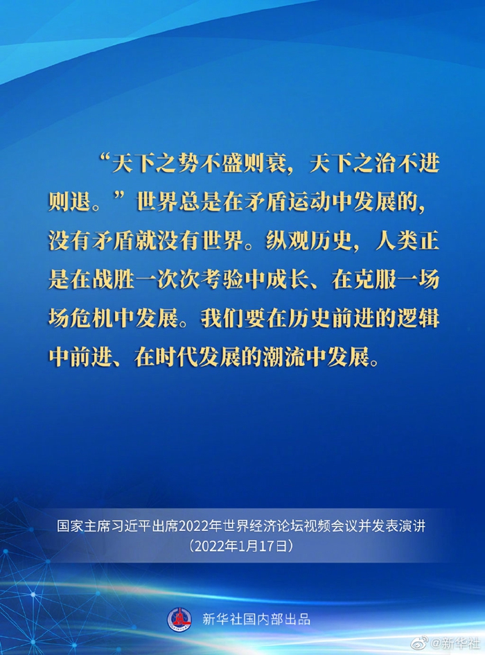 - 2022-01-17习近平在2022年世界经济论坛视频会议的演讲(全文)