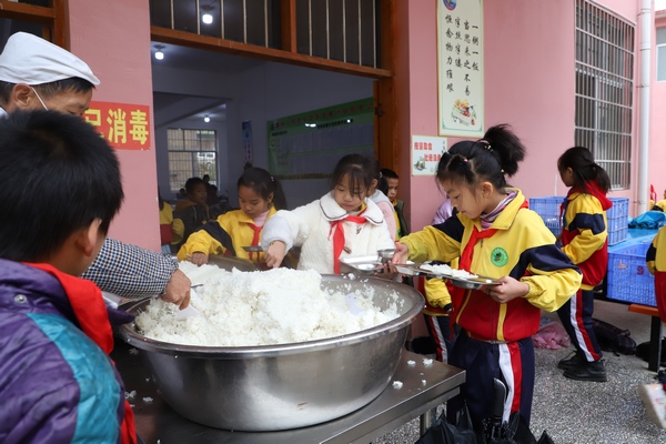 阳春三月,在都江镇来术村半山腰上,驻村工作队员韦跃启与同伴提着“伙食”,去看望年过七旬的王德银夫妇俩。敞亮的房子里,“一家子”其乐融融。