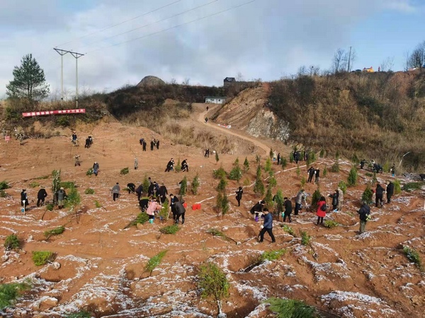 2022年春节假期后的首个工作日,干部群众一同植树。清镇市自然资源局供图