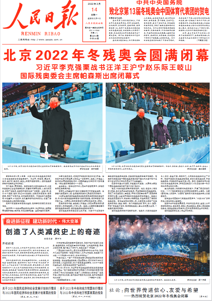 - 2022-03-14北京2022年冬残奥会圆满闭幕 习近平出席闭幕式
