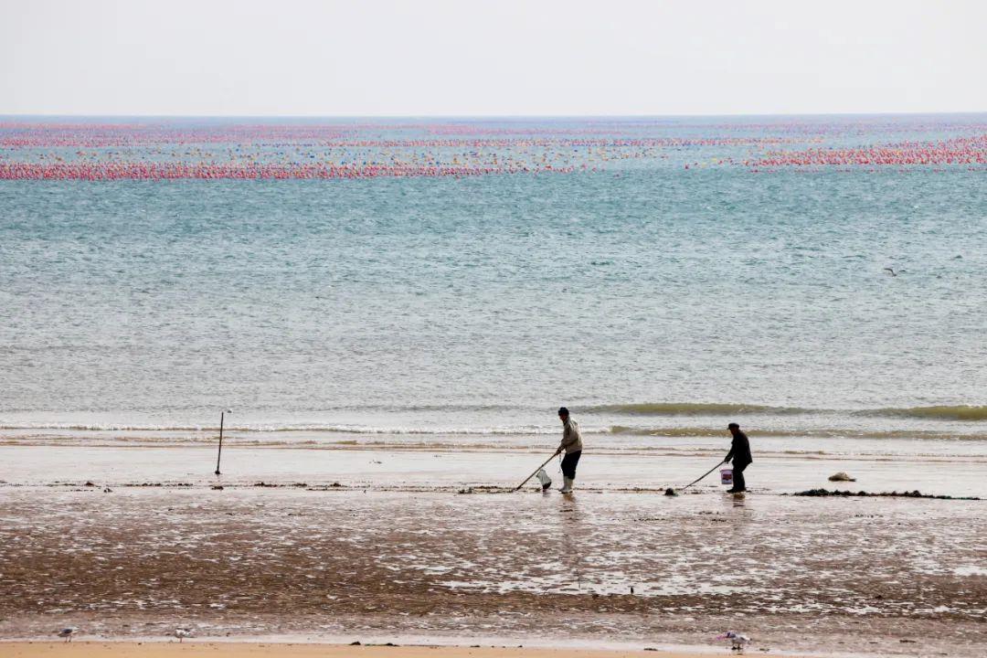 △2022年3月1日,山东青岛,西海岸新区黄海之滨,渔民在捕蛤蜊。