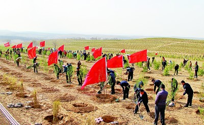 山西右玉干部群众义务植树让绿进沙退。辛泰摄/光明图片