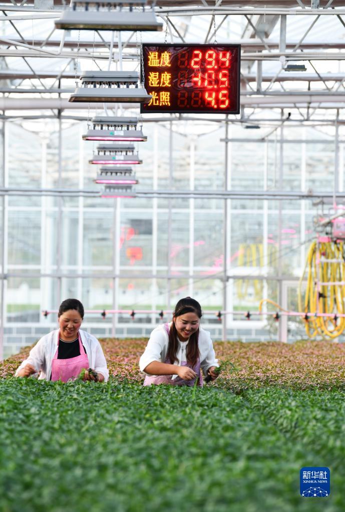 农民在位于贵州省威宁县的贵州江楠育苗中心管理蔬菜苗,大棚内的温度、湿度、光照可通过人工智能系统调控(2020年6月16日摄)。新华社记者 杨文斌 摄