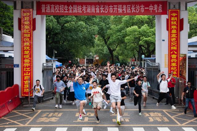 ↑6月9日,在湖南省长沙市一中考点,考生在考试结束后跑出考场。新华社记者 陈振海 摄
