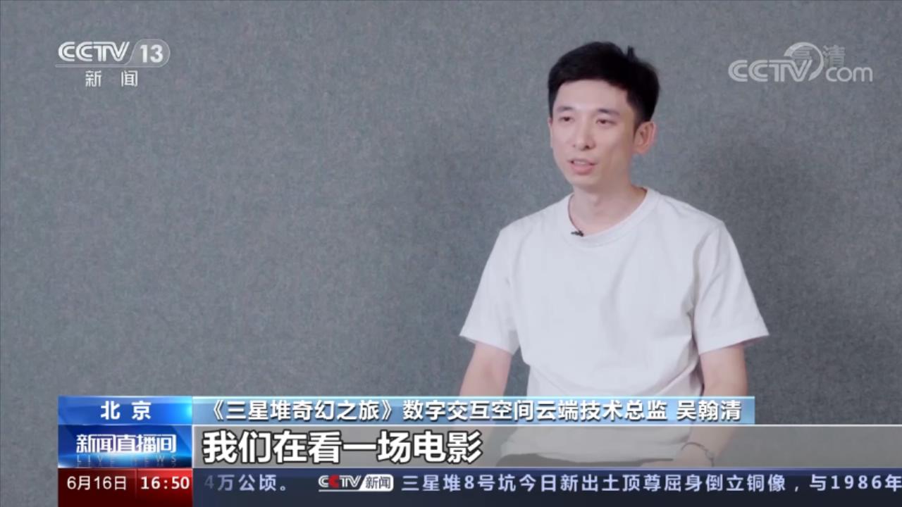 《三星堆奇幻之旅》数字交互空间云端技术总监 吴翰清:这样这一次活动的体验,我相信是史无前例的。我们在看一场电影、看一场直播或者看一些动画,我们所有的观众是在单向地接收信息,但是在这样一个平行数字空间中,我们所有的人是身在其中,参与中间的互动,这是一种双向的娱乐体验,这可能代表了娱乐的未来。