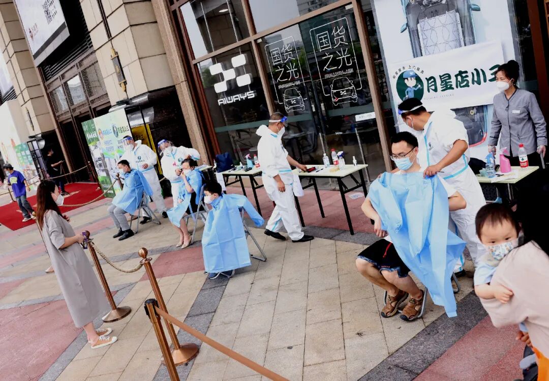 2022年6月1日,上海月星环球港商场为首批顾客提供免费理发服务。6月1日起,上海全面恢复全市正常生产生活秩序。新华社记者陈飞摄