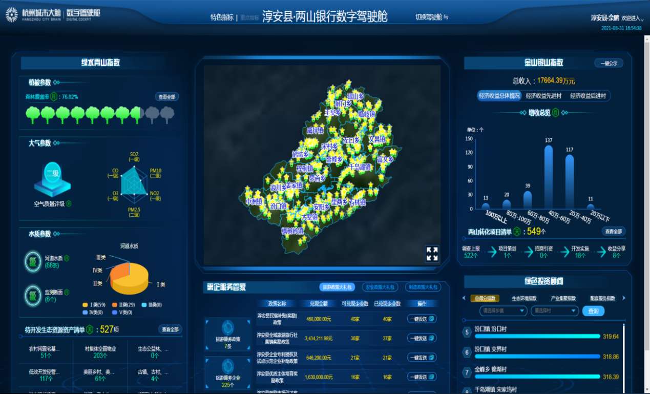 作为杭州市率先启动“两山银行”改革试点地区,截止2021年底,淳安56个“两山银行”转化实施项目中,37个项目已经完工,投资总额19.98亿元,带动就业人数937人,促进村集体和农民增收近2650余万元,有效打通绿水青山向金山银山转化的绿色通道。