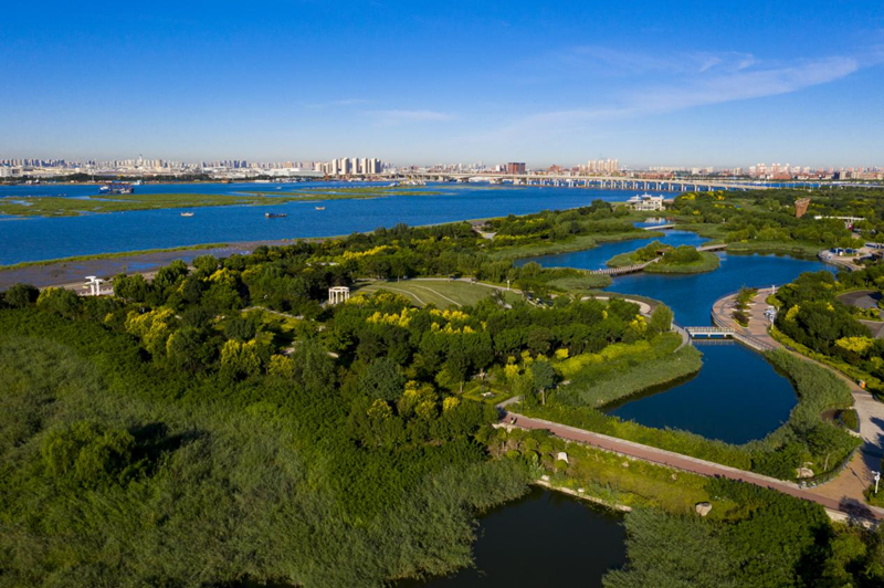 站在中新天津生态城南堤滨海步道远眺永定新河口湿地,海天一色、层层叠翠;正值夏季的七里海湿地,水光潋滟、鱼儿相逐、群鸟翩跹……在“871”重大生态工程的大力实施下,津沽大地绿意盎然、生机勃勃。