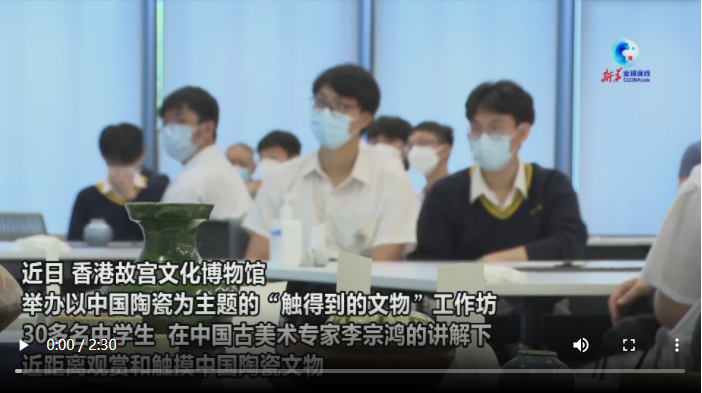 近日,香港故宫文化博物馆以中国陶瓷为主题,举办“触得到的文物”工作坊。来自圣若瑟英文中学的30多名学生,在中国古美术专家李宗鸿的讲解下,近距离观赏中国陶瓷文物,加深对中华传统文化的认识,感受中国文化艺术的魅力。