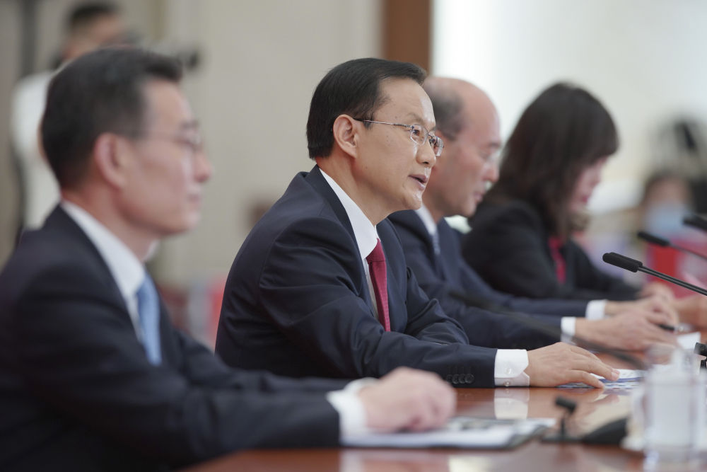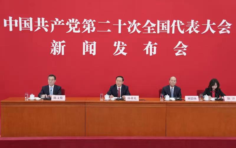10月15日,中国共产党第二十次全国代表大会新闻发言人孙业礼在北京人民大会堂举行新闻发布会。新华社记者 才扬 摄
