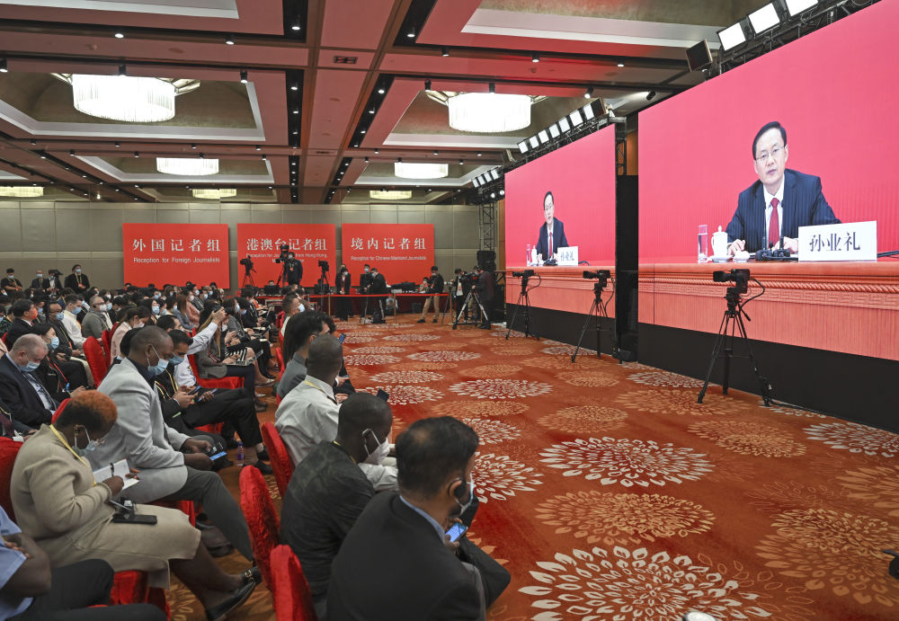 10月15日,中国共产党第二十次全国代表大会新闻发言人孙业礼在北京人民大会堂举行新闻发布会。这是记者在分会场采访拍摄。新华社记者 金良快 摄