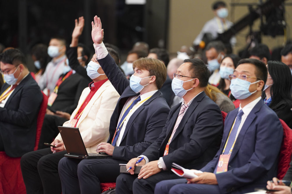 10月15日,中国共产党第二十次全国代表大会新闻发言人孙业礼在北京人民大会堂举行新闻发布会。这是记者在分会场举手提问。新华社记者 金良快 摄