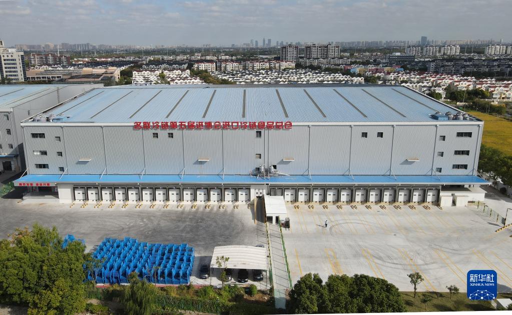10月20日,空中俯瞰位于上海青浦区的名联冷链第五届进博会进口冷链食品总仓(无人机照片)。新华社记者 方喆摄