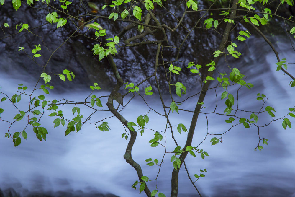 ↑浙江省宁波市宁海县山涧溪流边的绿叶如满天繁星。冯小波 摄