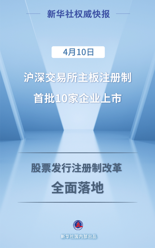 新华社权威快报丨沪深交易所主板注册制首批企业上市