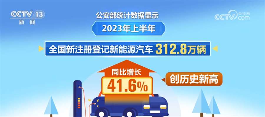 公安部统计数据显示,2023年上半年,全国新注册登记机动车1688万辆,同比增长1.9%。全国新注册登记新能源汽车312.8万辆,同比增长41.6%,创历史新高。