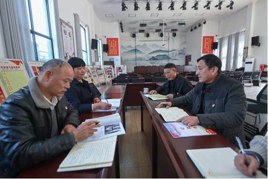 2022年以来,浙江省杭州市临安区昌化镇积极构建“党员+农户”网格治理机制,将全镇党员分层分类进行网格地域划分,平均每个党员联系8至10家农户,明确党员具体服务事项,推动实现党员常态化走访,村两委、党员、农户互相督促的管理机制。同时,定期组织机关党员干部深入一线,听民声、晓民意、解民忧,推动农村基层治理有效提升。图为2023年3月28日,在杭州市临安区昌化镇石铺村党群服务中心,石铺村党员网格长(右一、右二)向石铺村两委班子反馈本月走访农户情况。 新华社记者 徐昱/摄