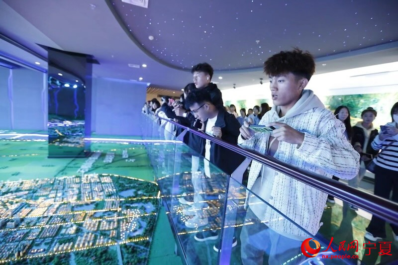 学生在石嘴山市规划展示馆了解城市规划发展和历史沿革。人民网记者 梁宏鑫摄