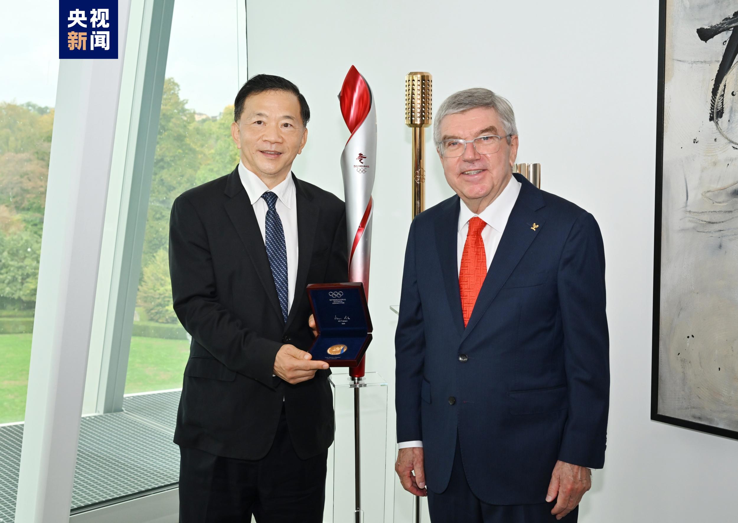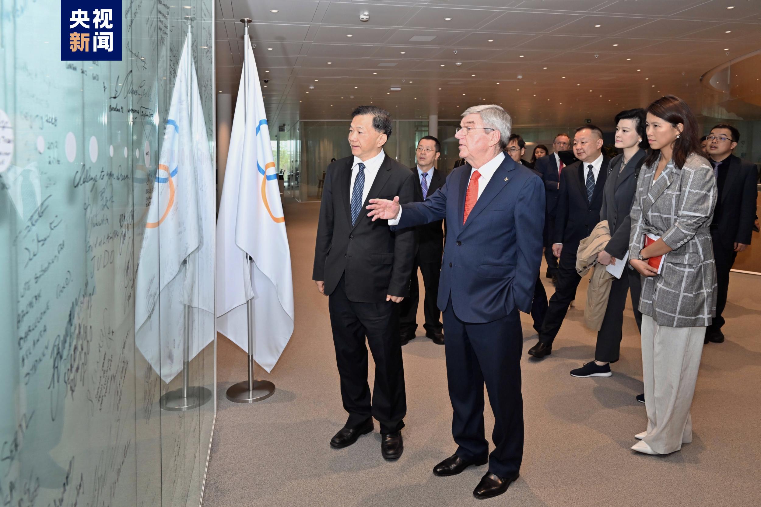 慎海雄一行在巴赫的陪同下参观了国际奥委会总部大楼“奥林匹克之家”。慎海雄还向巴赫赠送了由中国雕塑家袁熙坤先生创作的巴赫主席雕塑。