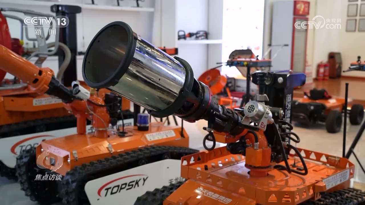 在我国的机器人产业布局中,特种机器人也是重点方向之一。在洪水、地震、火灾等极端事件中,特种机器人往往能代替人完成任务,发挥关键作用。凌天智能是一家专门研发、生产特种机器人的公司。在公司展厅里,最引人注目的是消防机器人。
