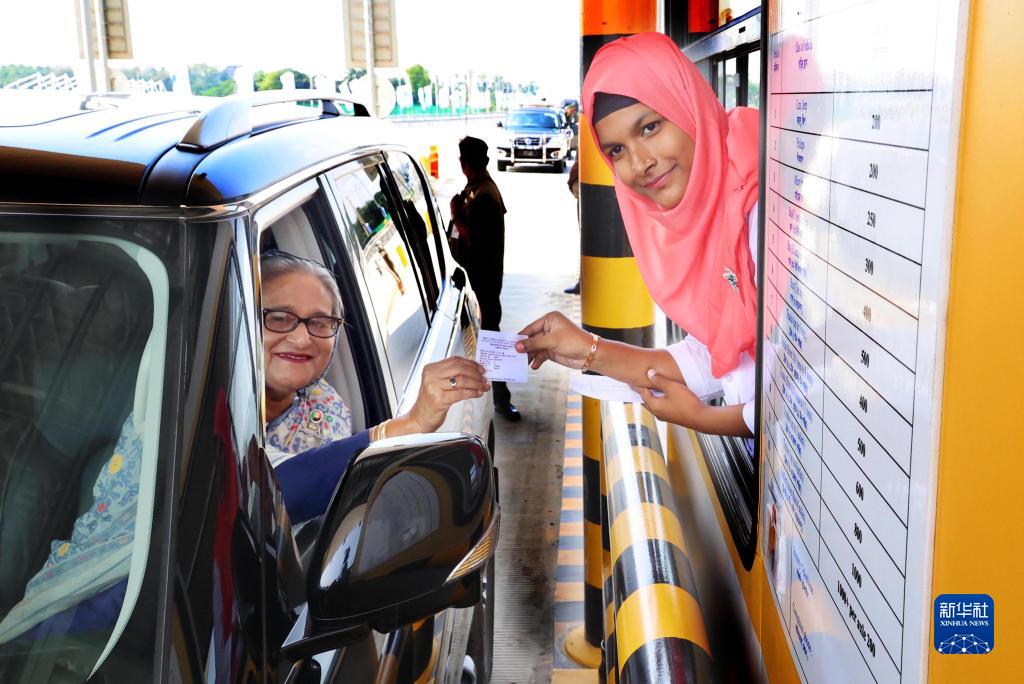 10月28日,在孟加拉国吉大港市,孟加拉国总理哈西娜通过卡纳普里河底隧道收费站时缴费。