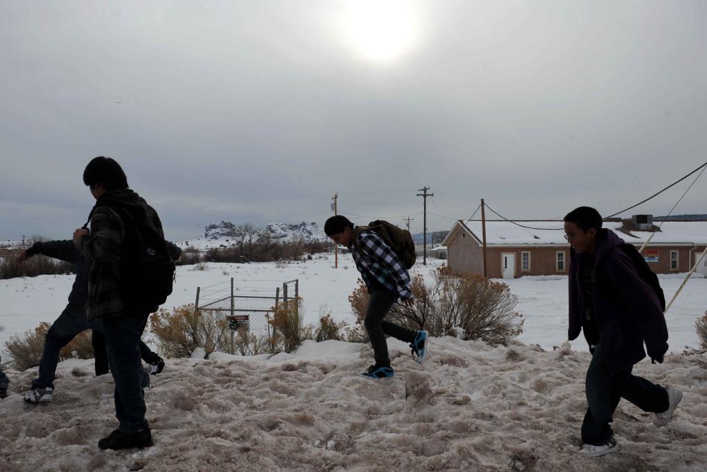 2010年1月27日,在美国新墨西哥州和亚利桑那州交界的一个印第安人村落,几名儿童走在放学回家的路上。为了同化印第安人,美国政府推行“美国化”教育,印第安部落社会和传统文化被逐渐瓦解。新华社发