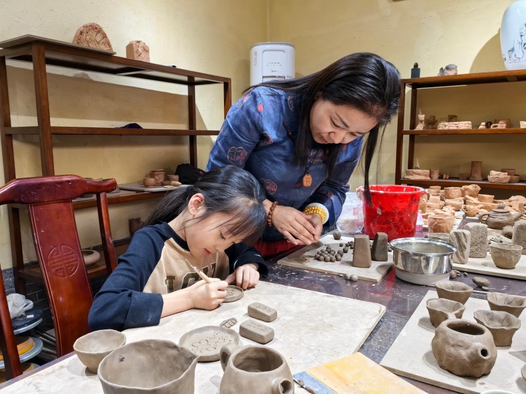 曾在北京学习和生活的张金霞,选择回到家乡开办工作室。现在,她一边制作和售卖澄泥印,一边承接研学游项目。“今年国庆节假期,我的几个工作室加起来平均每天有近万人次参观体验,平时周末每天也能有千余人。”她笑着说。
