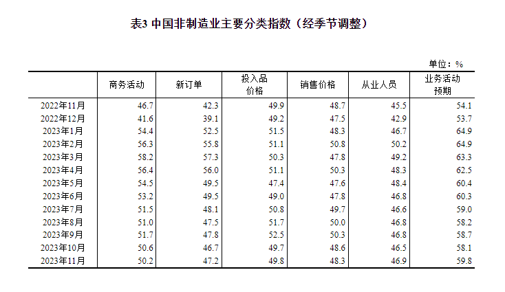 业务活动预期指数为59.8%,比上月上升1.7个百分点,表明非制造业企业对近期市场恢复发展信心增强。分行业看,建筑业业务活动预期指数为62.6%,比上月上升1.2个百分点;服务业业务活动预期指数为59.3%,比上月上升1.8个百分点。