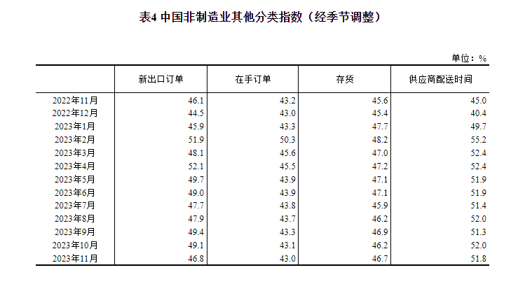 供应商配送时间指数为50.3%,比上月上升0.1个百分点,表明制造业原材料供应商配送继续加快。