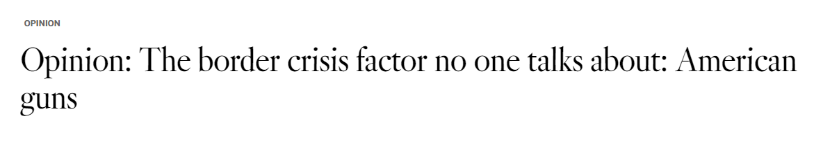 文章称,与美国不同,墨西哥的枪支法律十分严格,全国仅有两家销售枪支的商店,经过审查的公民可以在那里购买数量有限且相对小口径的武器,但与墨西哥接壤的美国得克萨斯州和亚利桑那州却有超过7000家获得美国联邦政府许可的枪支经销商以及典当行。在墨西哥各地犯罪现场发现的大多数枪支均可追溯到美国这两个州,但并不局限于此,一些枪支还来自比较远的阿肯色州、佛罗里达州甚至马萨诸塞州。据估计,大约有20万至50多万支购于美国境内枪支商店、枪支展会或者私人销售的枪,被贩运到了南部边境。