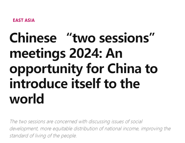 文章称,两会关注的是讨论社会发展问题,更公平地分配国民收入,提高人民生活水平,增进城乡平衡,关注偏远地区,促进经济稳定增长,深化以创新创造为核心的各项工作,增加教育、医疗等与人民群众息息相关的支出。