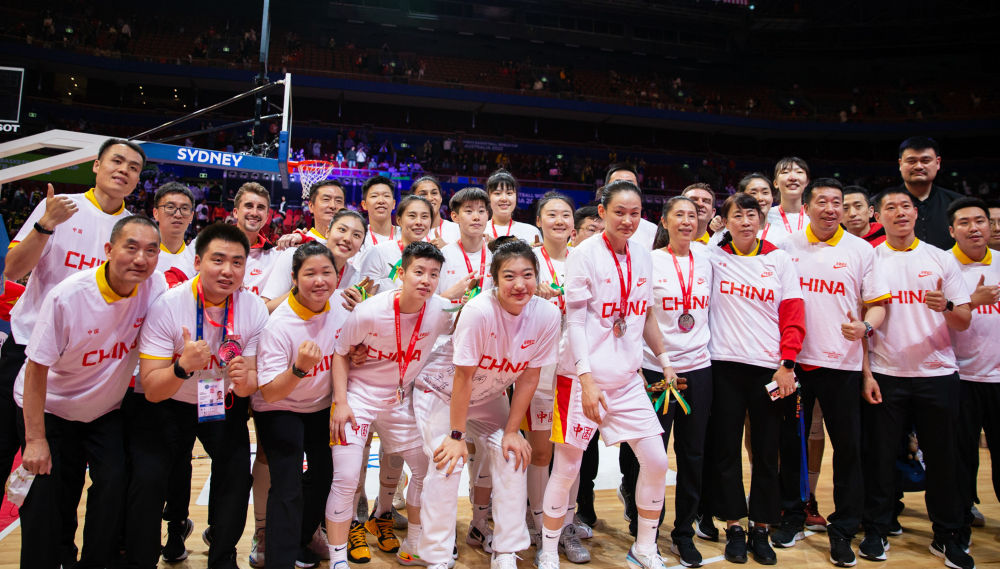 2022年10月1日,中国队在颁奖仪式后。当日,在澳大利亚悉尼进行的2022女篮世界杯决赛中,中国队不敌美国队,获得亚军。新华社发(胡泾辰摄)