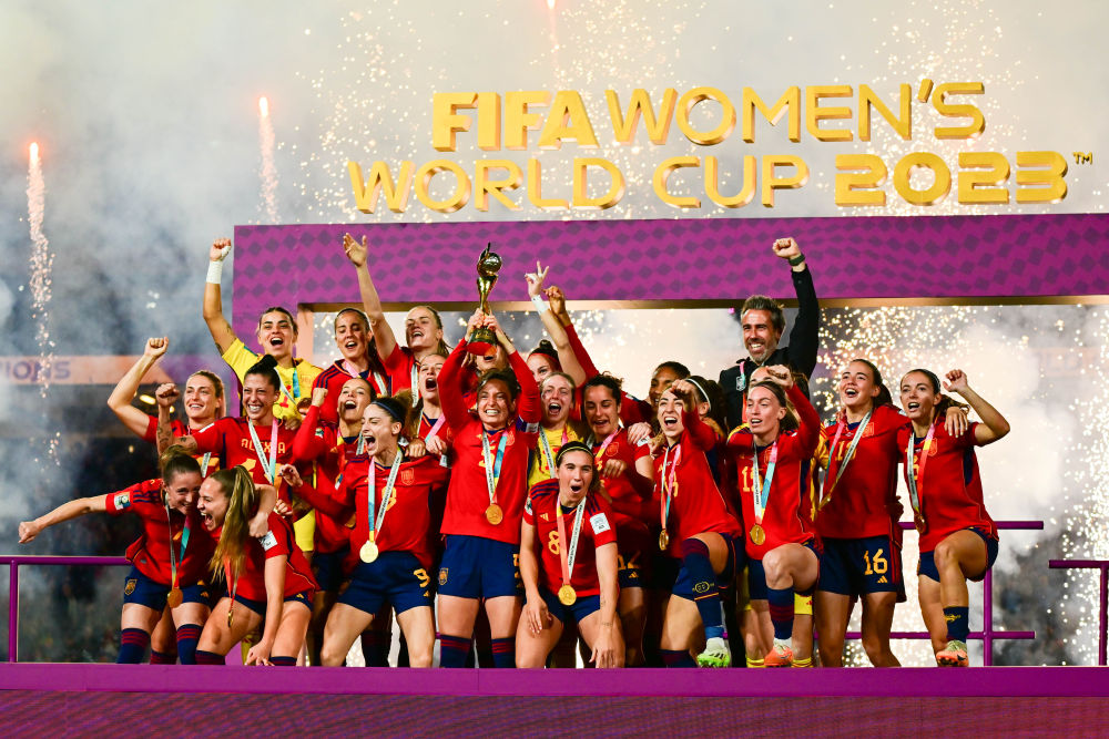 2023年8月20日,西班牙队庆祝夺冠。当日,在澳大利亚悉尼举行的2023年国际足联女足世界杯决赛中,西班牙队1:0战胜英格兰队,获得冠军。新华社记者 朱炜 摄