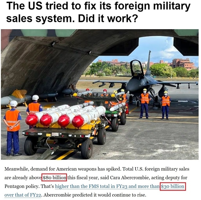 美国国防部负责政策事务的代理副部长卡拉·阿伯克龙比日前证实,2024财年至今,美国对外军售额已达800多亿美元,超过了2023财年的对外军售总额。