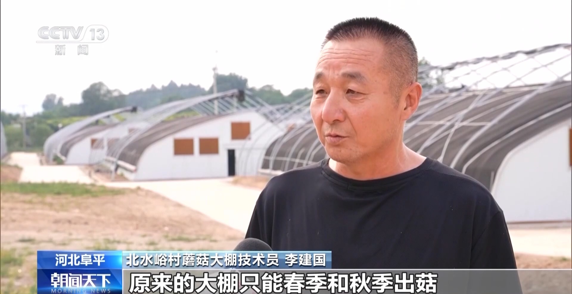 河北省阜平县北水峪村蘑菇大棚技术员 李建国:咱们大棚全是智能化大棚,原来的大棚只能春季和秋季出菇,咱们的大棚实现了一年四季出菇,大大提升了蘑菇的产量和质量。