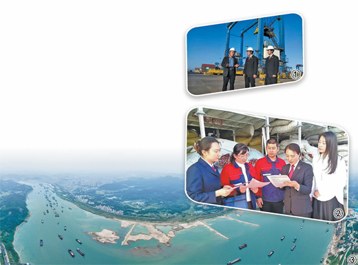 图①:福建省泉州市石狮市检察院检察官向当地港口企业进行安全生产指导。 闫 昭摄 图②:山东省青岛市胶州市检察院检察官向当地企业讲解知识产权司法保护相关知识。 郭树合摄 图③:广东省云浮市郁南县,西江上的货运船舶往来穿梭。 林志清摄 |