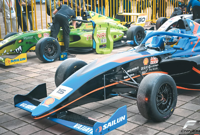 F4赛事上装备赛轮轮胎的赛车。 受访企业供图 |