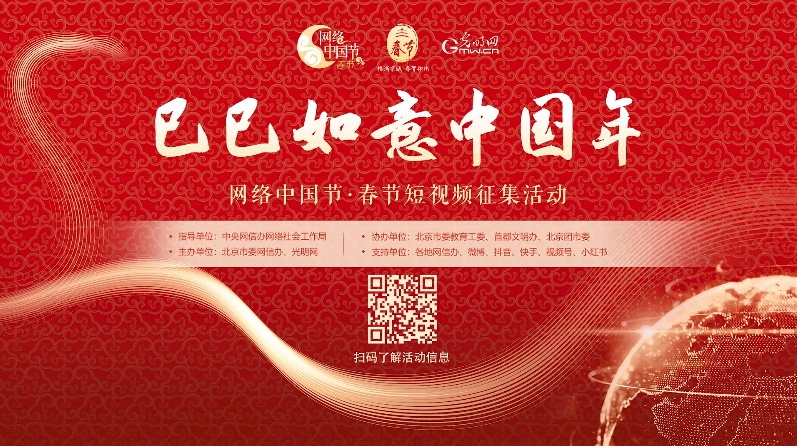 在乙巳蛇年新春即将到来之际,由中央网信办网络社会工作局指导,北京市委网信办、光明网联合主办,北京市委教育工委、首都文明办、北京团市委协办的“巳巳如意中国年”网络中国节·春节短视频征集活动正式开启。我们诚邀您在抖音、快手、微博、视频号和小红书平台共同分享首个“世界非遗版”的春节盛宴,一起用镜头记录中国传统佳节萦绕的人间烟火,共同讲述全球共庆中国年的文化传承故事。