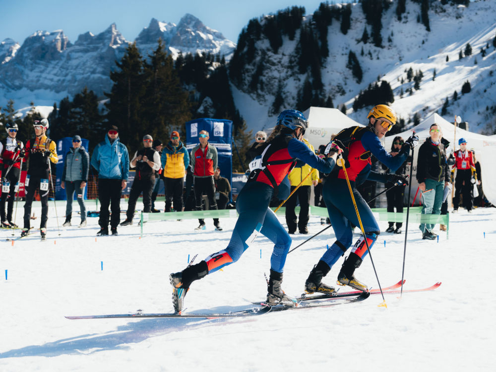 法国组合埃米莉·哈罗普(左)/蒂博·安塞尔梅在比赛中。国际滑雪登山联合会官网图片